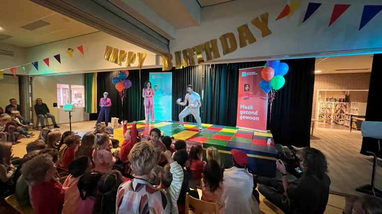 JOGG-Leeuwarden startte ‘Wie jarig is, viert feest’ met één helder idee: een verjaardag is er om samen te vieren. Zonder dure traktaties, zonder wedstrijdjes. Want jarig zijn is al feest genoeg. Met startpakketten vol feestkaartjes, een prentenboek, poster en verjaardagskalender konden scholen en opvang meteen aan de slag. Leerkrachten en pedagogisch medewerkers kregen voorbeeldbrieven en bijeenkomsten om ouders mee te nemen. Zo werd een verjaardag weer waar het om draait: een écht feestmoment voor ieder kind. Met minder druk voor ouders, meer gelijkheid in de klas én een gezondere omgeving.